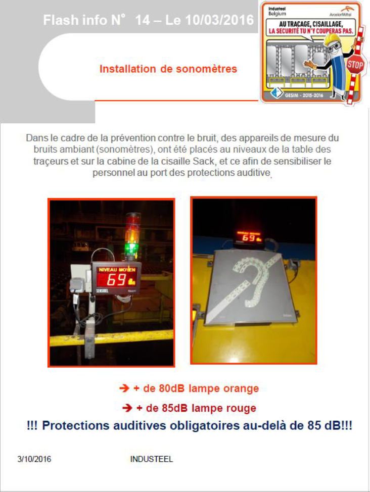 Augmentation visible du port des protections auditives (50 à 60%). Les opérateurs sont convaincus que le port des protections est important.