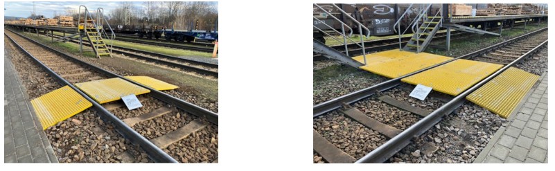 Pose de caillebotis anti-dérapants fixés au rail, sans marche qui permettent la traversée des voies ferrées.