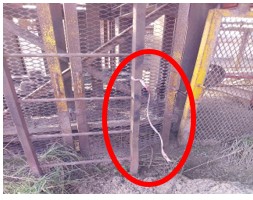 Personne n’avait connaissance des zones balisées (EI, etc). GC37 était initialement balisée pour protéger d’un risque de chute de hauteur à cause de l’état de la passerelle d’accès (risque de passer à travers). Le balisage était arraché alors qu’un intervenant des EI est passé en pensant qu’il s’agissait d’un ancien balisage qui avait mal été retiré. Le pied de l’intervenant est passé au travers du caillebotis, heureusement, il a eu le temps de reculer avant de passer complètement à travers.