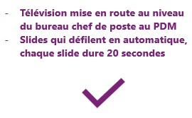Cartographie disponible sur clef USB et donc visible sur les ordinateurs des feux continus, le contenu de la clé USB et donc de la diffusion sera mis à jour toutes les semaines.