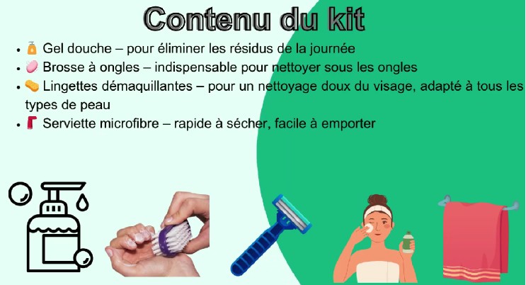 Kit par personne (si dotation annuelle): 2 serviettes, 12*350Ml gel douche, 1 paire de tong, 6 paires de chaussettes, brosse à ongle: 100 euros par an