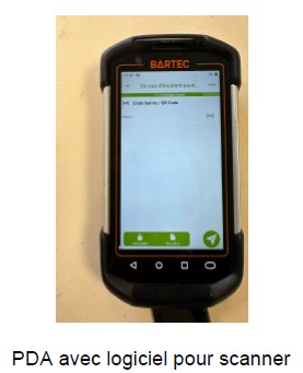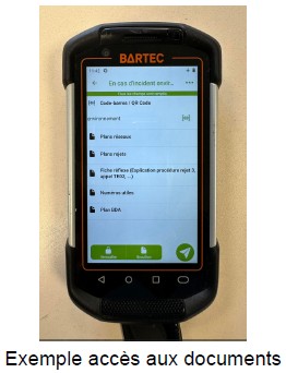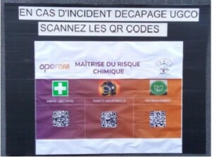En arrivant sur les lieux du sinistre, les intervenants en utilisant leur PDA peuvent se référer aux documents en scannant les QR codes par famille et ainsi mieux évaluer les risques (explosion, dégagement vapeur, dégâts potentiels,…).
