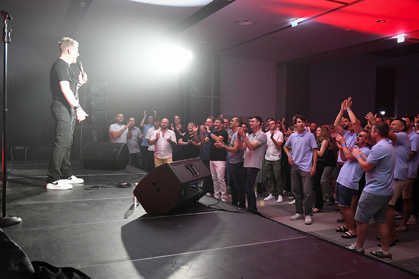 Erick BAERT, The Voice’s Performer a enflammé la salle avec son spectacle alliant humour et imitations musicales.