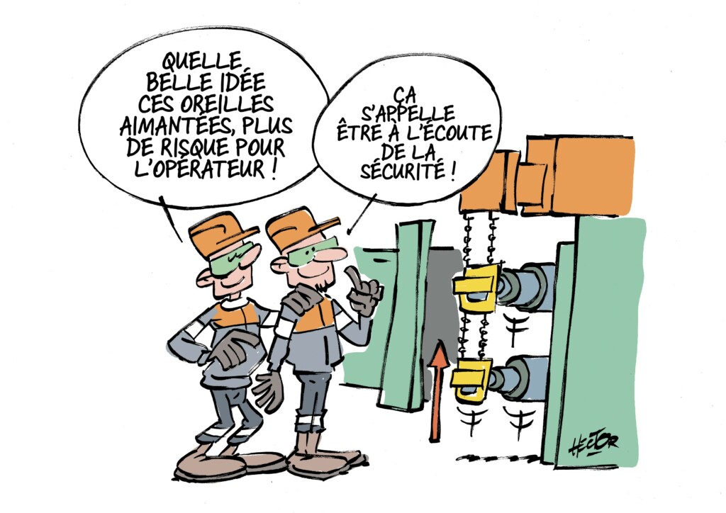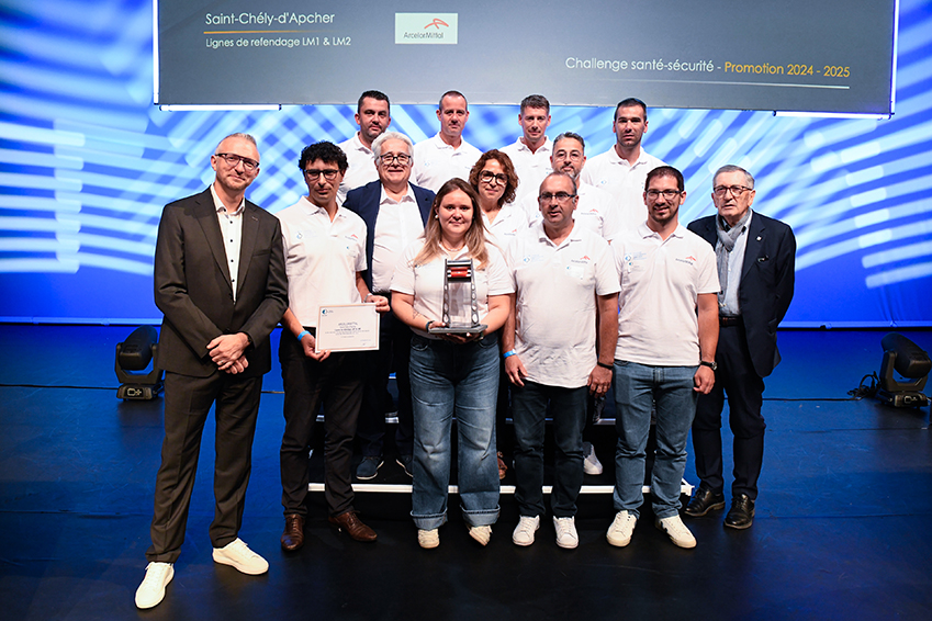 - Pour le Jury Est, l’équipe du Recuit Continu Mixte d’ArcelorMittal Florange pour son action « Manutention des cylindres ». L’équipe a créé des oreilles de manutention aimantées pour faciliter la manipulation des cylindres au pont et ainsi éliminer les risques de coincement et écrasement et également celui qu’un opérateur se trouve sous la charge lors de l’opération au pont.